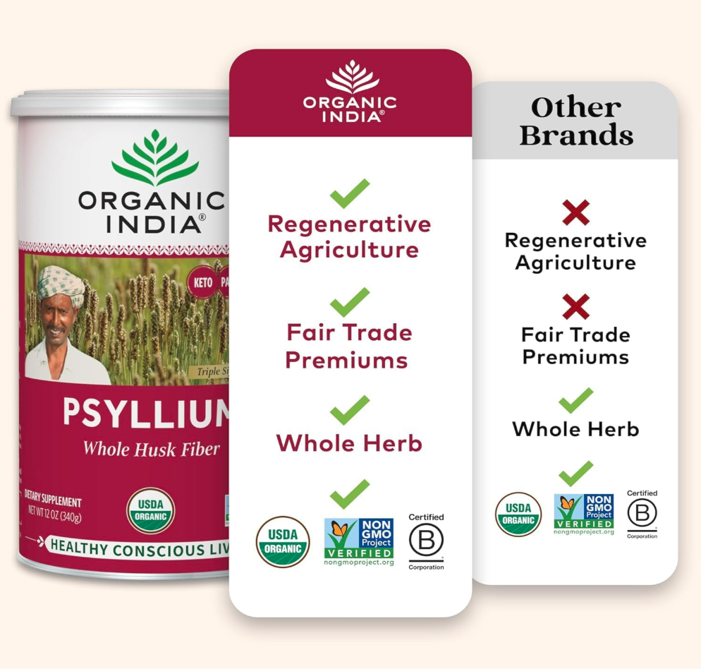 ORGANIC INDIA Psyllium Herbal Powder – Whole Husk Fiber, Vegan, Gluten-Free, USDA Certified Organic